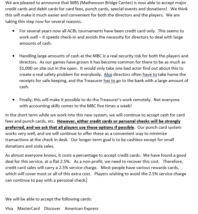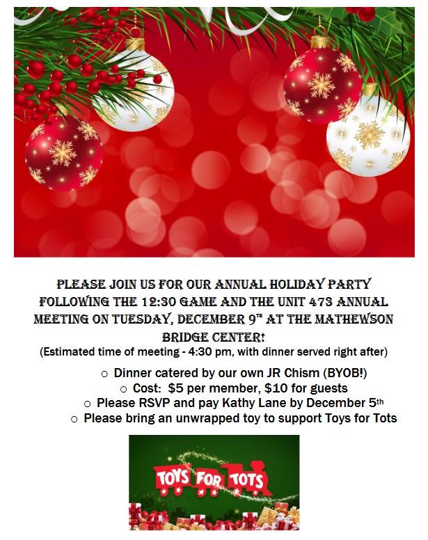 Page Links: November Calendar | Christmas Party | Credit Card Information | Weekly Schedule | Current News | Table Count